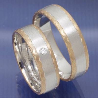 Zweifarbige Partnerringe aus 585 Weiß- und Rotgold