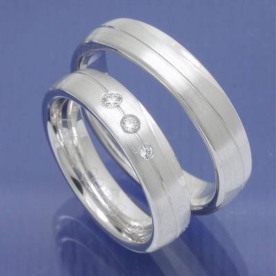 Diese edlen Trauringe werden aus hochwertigem 585 Weißgold gefertigt und vereinen mattierte und glänzende Flächen zu einem zeitlosen Design.