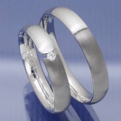 Diese feinen Eheringe werden aus einer edlen Kombination von 585 Weißgold und Graugold gefertigt. Durch die zweifarbige Gestaltung entsteht ein moderner und eleganter Kontrast. Der Damenring wird mit einem 0,03 ct W-si Brillanten geschmückt, der ihm einen dezenten, funkelnden Akzent verleiht.