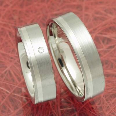 Diese Trauringe aus 585 Weißgold vereinen zwei Legierungen – helles und dunkles Weißgold – in einem modernen und stilvollen Design. Der Damenring wird mit einem 0,02 ct W-si Brillant veredelt, der ihm eine dezente und zugleich edle Ausstrahlung verleiht.