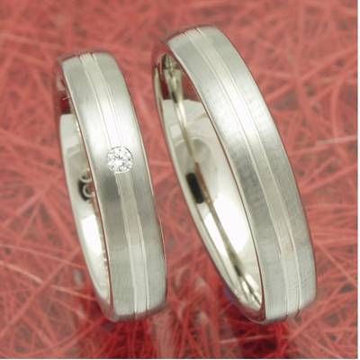 Diese edlen Trauringe aus 585 Weißgold verbinden helles und dunkles Weißgold zu einem stilvollen Kontrast. Der Damenring wird von einem funkelnden 0,03 ct W-si Brillanten veredelt, der die Ringe zu einem besonderen Blickfang macht.