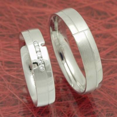 Diese Trauringe aus 585 Weißgold vereinen zeitlose Eleganz mit moderner Schlichtheit. Der Damenring wird von funkelnden 0,04 ct W-si Brillanten geziert, die ihm einen besonderen Glanz verleihen, ohne aufdringlich zu wirken.