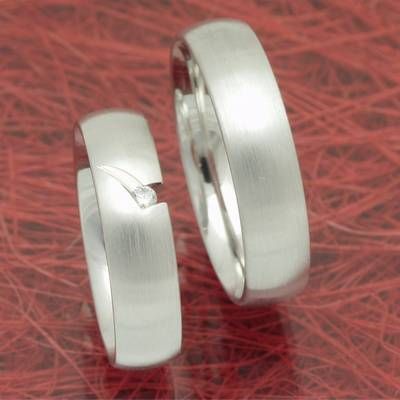 Diese Ringe aus 585 Weißgold verbinden Eleganz mit zeitloser Schlichtheit. Der Damenring wird durch einen funkelnden 0,035 ct W-si Brillanten veredelt, der den Ring zu einem edlen Blickfang macht.