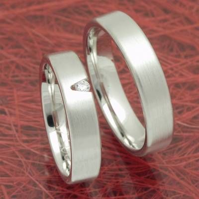 Diese eleganten Ringe aus 585 Weißgold überzeugen durch ihre zeitlose Form und eine edle Verarbeitung. Der Damenring wird mit einem funkelnden 0,05 ct W-si Brillanten verziert, der ihm eine feine Brillanz und besondere Strahlkraft verleiht.
