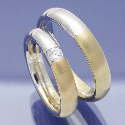 Ein elegantes Ringpaar für Paare, die ihre Liebe mit klassischer Eleganz und einem edlen Brillantakzent besiegeln möchten.