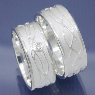 Diese ausgefallenen Partnerringe, Freundschaftsringe werden aus 925 Silber angefertigt. Der Damenring wird mit einem Zirkonia gefasst.