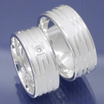 Diese ausgefallenen Partnerringe, Freundschaftsringe werden aus 925 Silber angefertigt. Der Damenring wird mit einem Zirkonia gefasst.