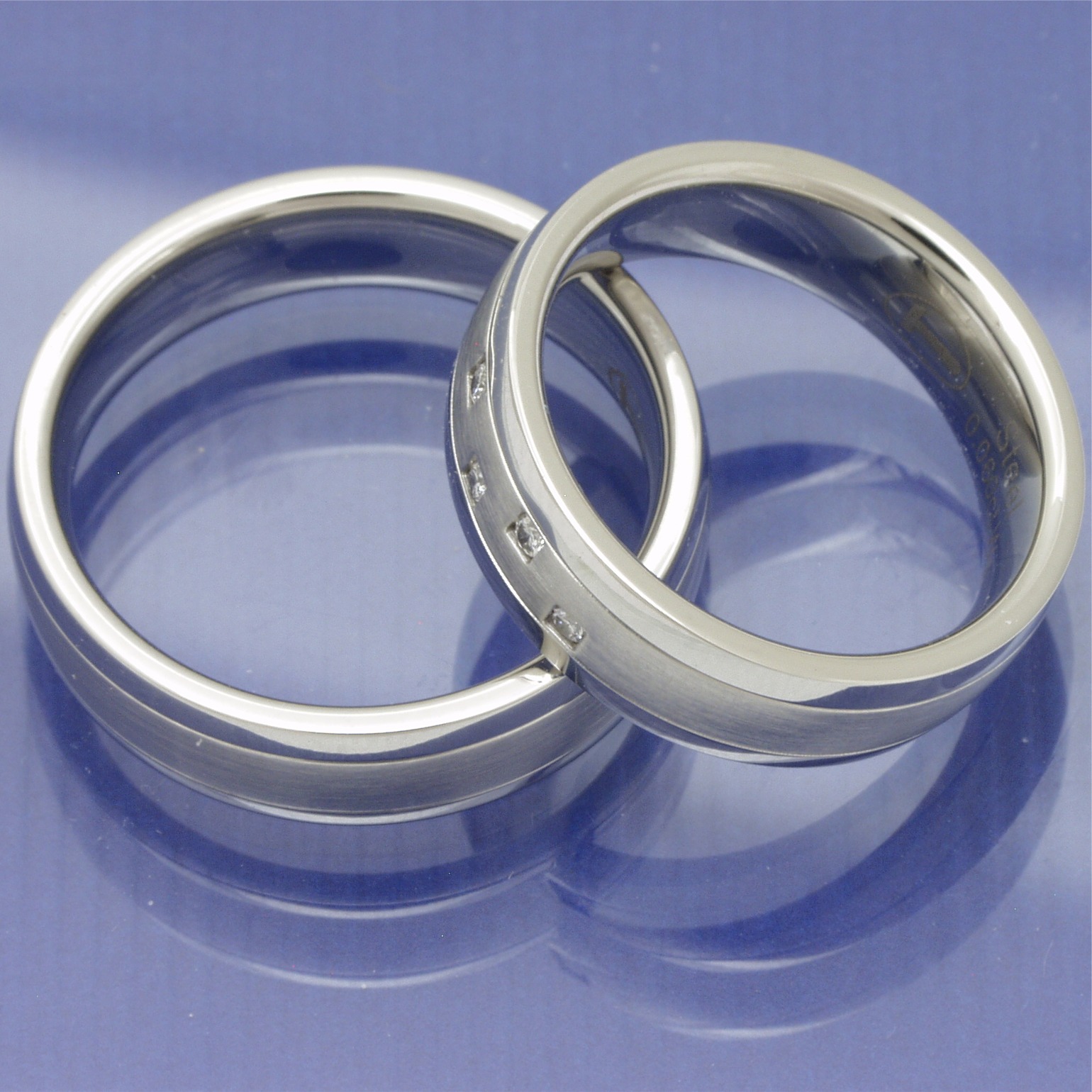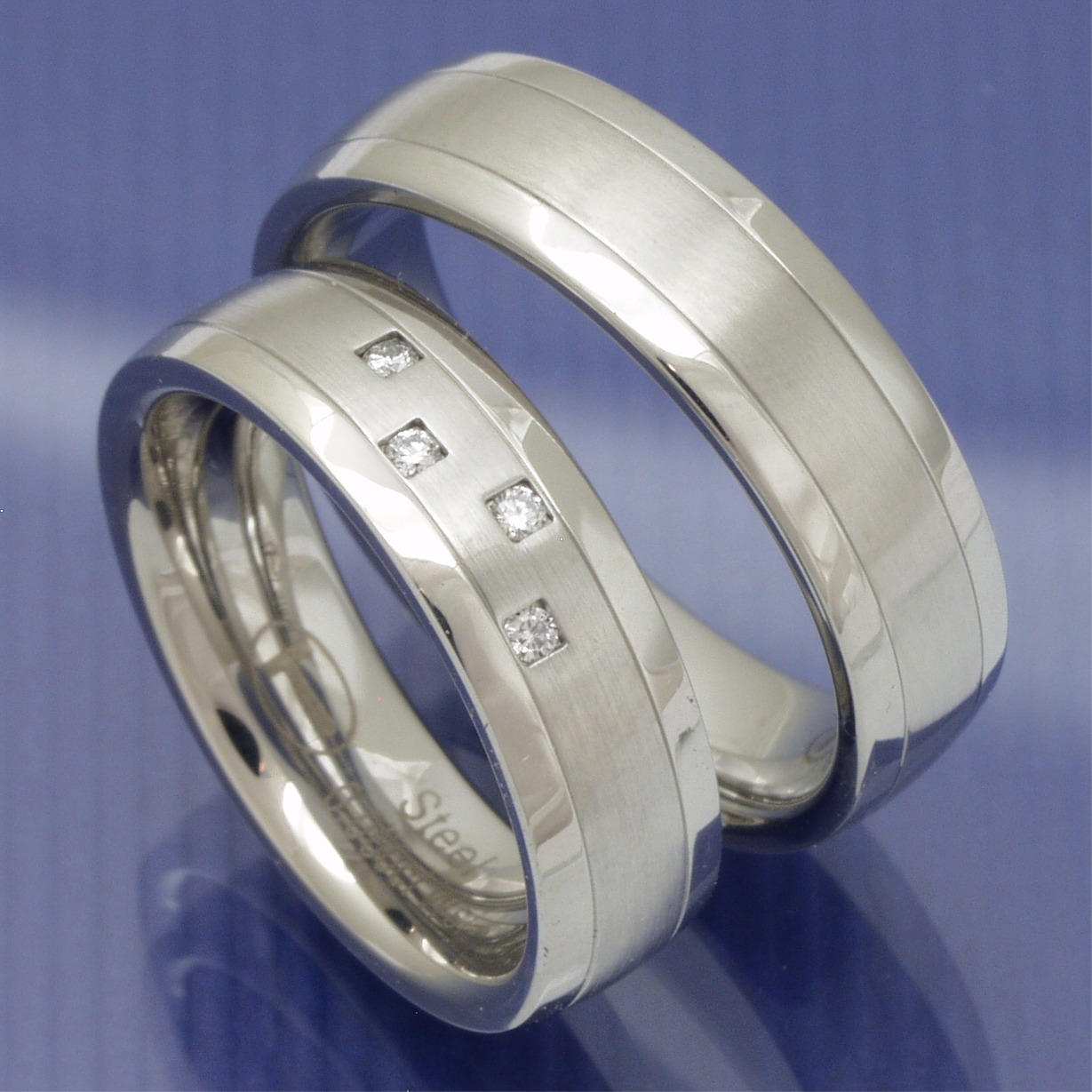 Diese Trauringe (Modell PB271444) aus der Serie Steel Evolution werden wie der Name schon sagt, aus Edelstahl angefertigt. Der Damenring wird mit vier Brillanten von zusammen 0,060 ct w-si gefasst. Die Edelstahlringe werden mattiert und hochglanz poliert. Mit diesen Trauringe haben Sie eine günstige Alternative zu anderen Trauringen aus Weißgold oder Platin.