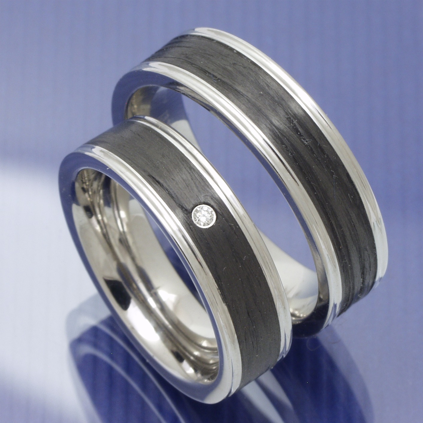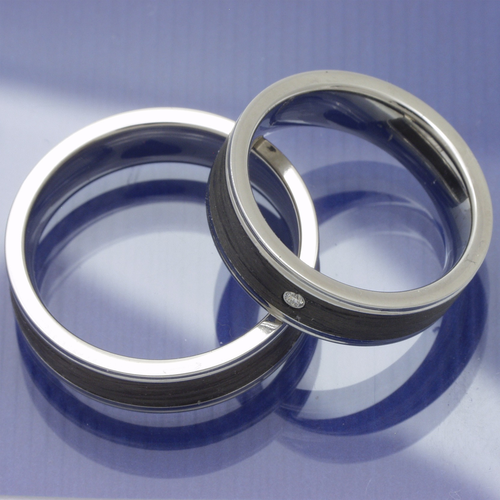 Edelstahl und Carbon Trauringe mit Brillant P2262714