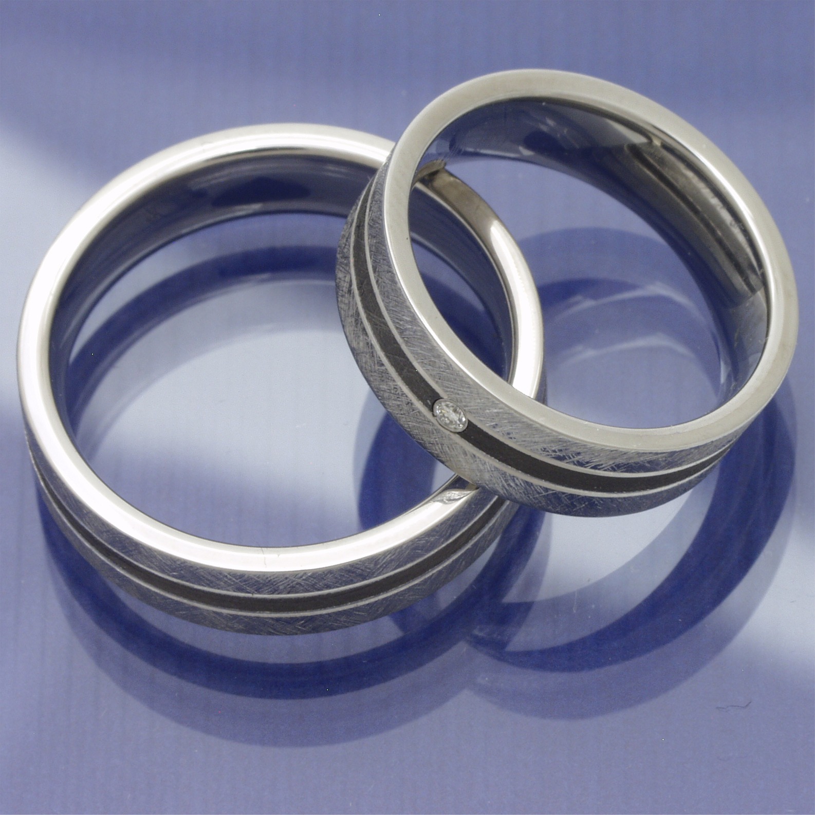 Edelstahl und Carbon Trauringe mit Brillant P2262737