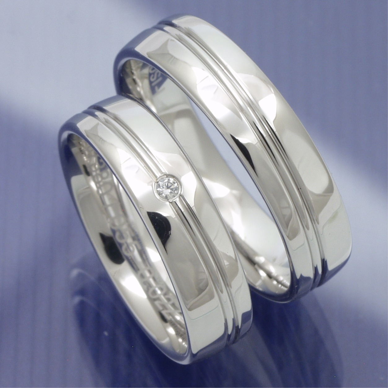 Eheringe aus 585 Weißgold mit Glanzrillen und Brillant