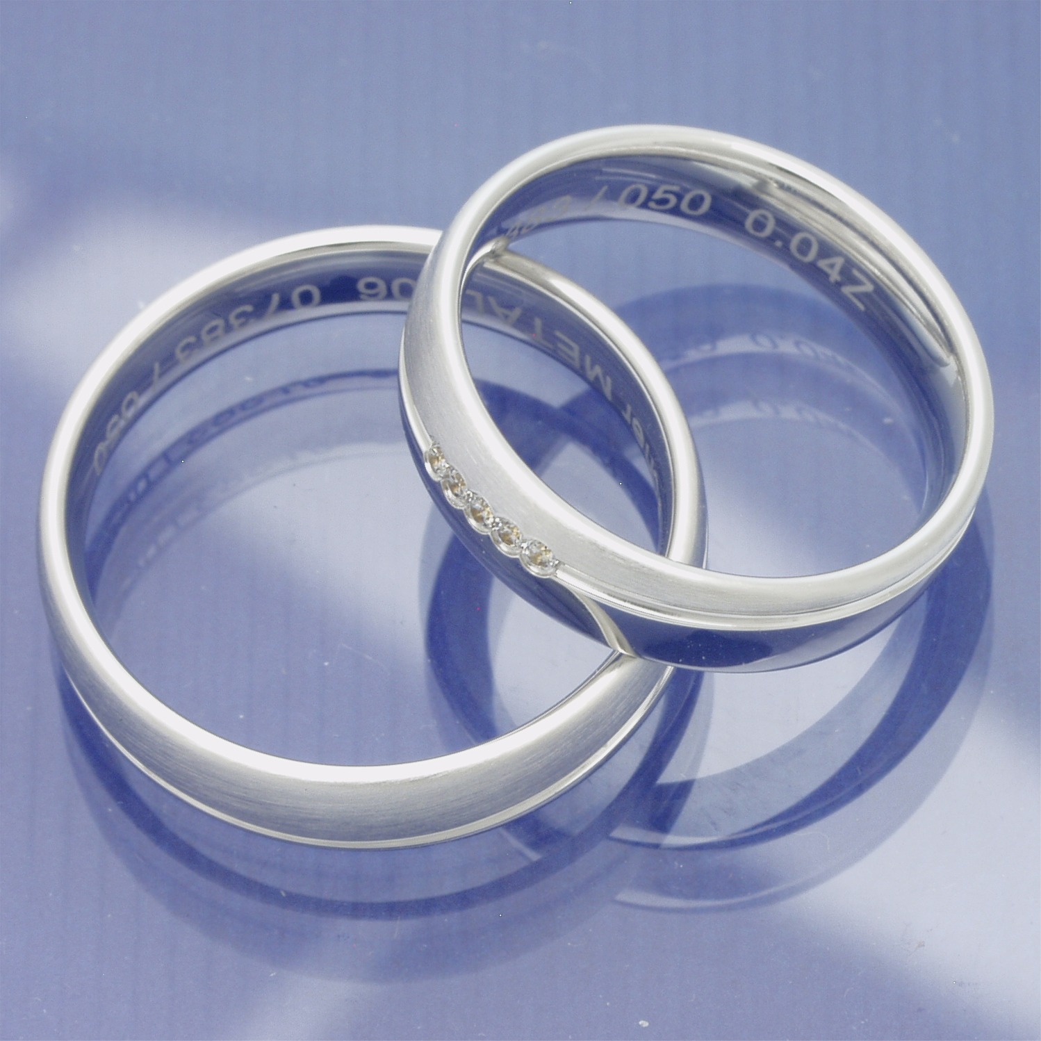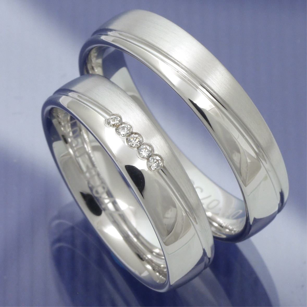 Weißgold Trauringe mit Glanzrille und Brillanten