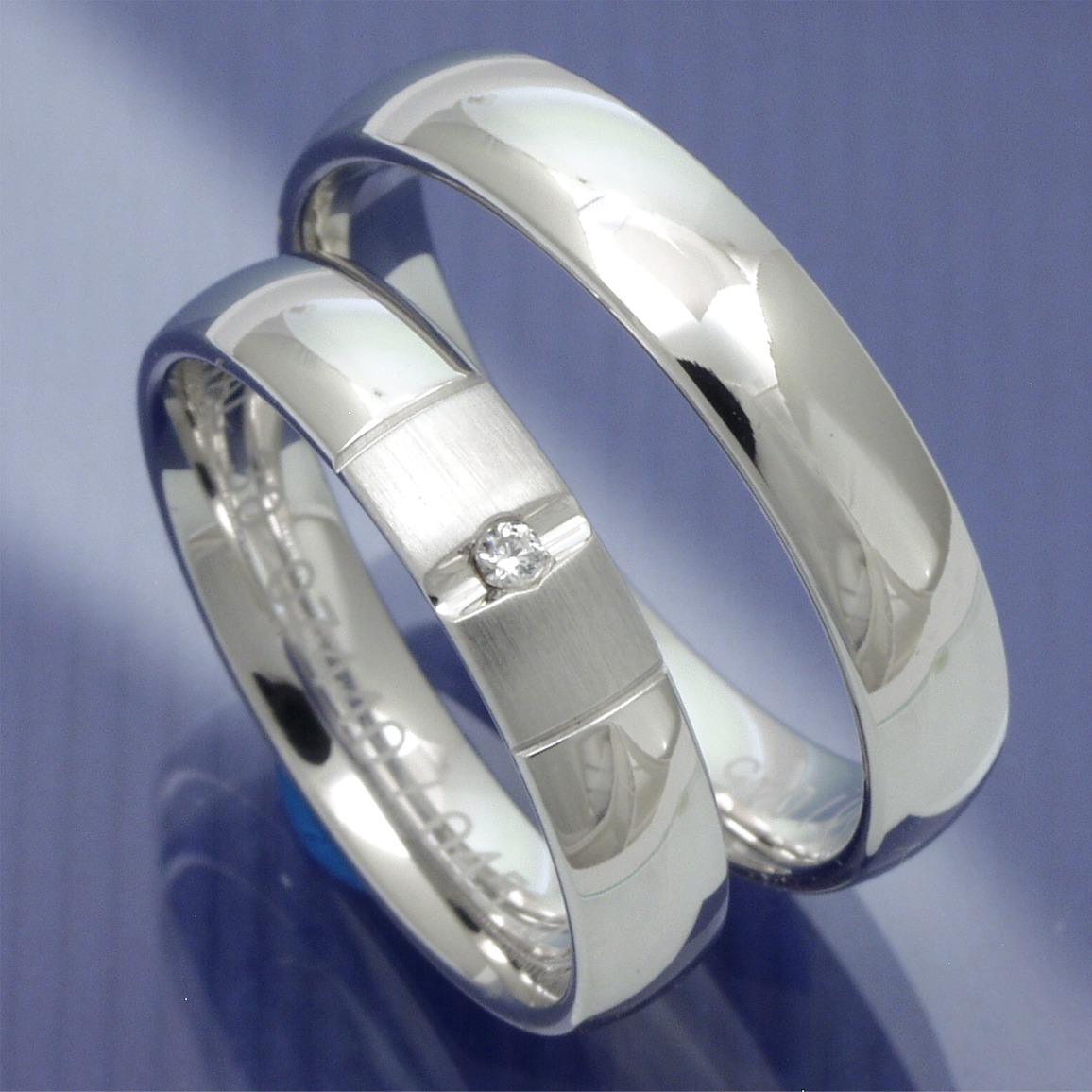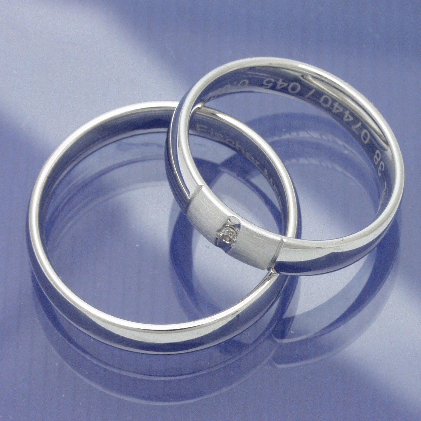 Klassische Trauringe aus 585 Weißgold mit Brillant