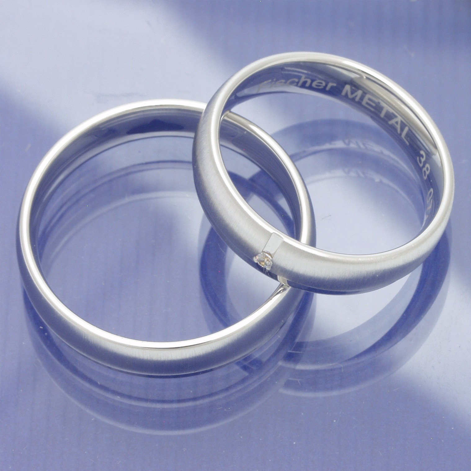 Eheringe aus 585 Weißgold mit polierter Stufe und Brillant