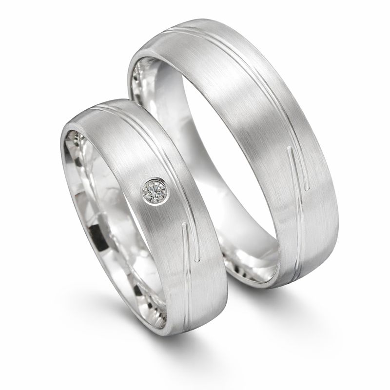 Mit einer Breite von 6 mm, einer Stärke von 1,8 mm und einem Gewicht von ca. 11 Gramm wirken die Ringe markant und zugleich elegant. Die mattierte Oberfläche wird von zwei umlaufenden, glänzend polierten Glanzrillen durchzogen, die dem Design eine moderne und stilvolle Raffinesse verleihen.