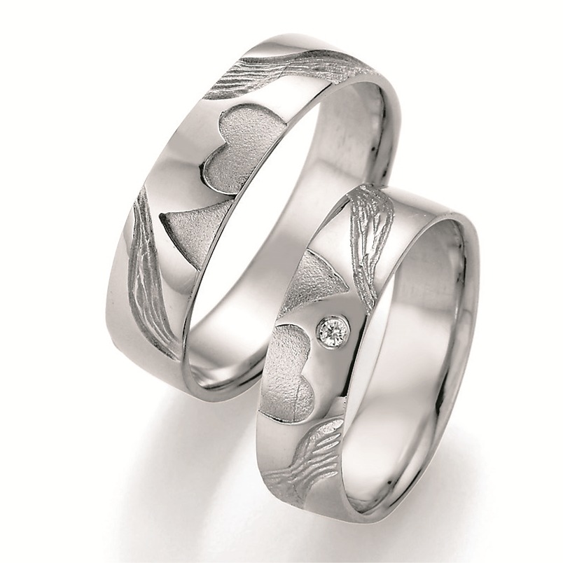 Diese Trauringe "Doppelherz" werden aus 925 Silber angefertigt. Jeder Ring ist ein Unikat, von Hand gefertigt, einzigartig und unverwechselbar. Rechnen Sie daher mit einer Anfertigungszeit von ca. 20 Tagen ab Zahlungseingang. Der Damenring wird in einem 0,025 ct w-si Brillanten gefasst.