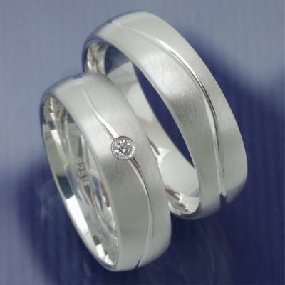 Die 6 mm breiten und 1,8 mm starken Ringe besitzen eine mattierte Oberfläche, die ihre schlichte Eleganz unterstreicht. Eine geschwungene, glänzende Glanzrille verläuft wie eine feine Welle über die Ringschiene und verleiht den Schmuckstücken eine außergewöhnliche Note.