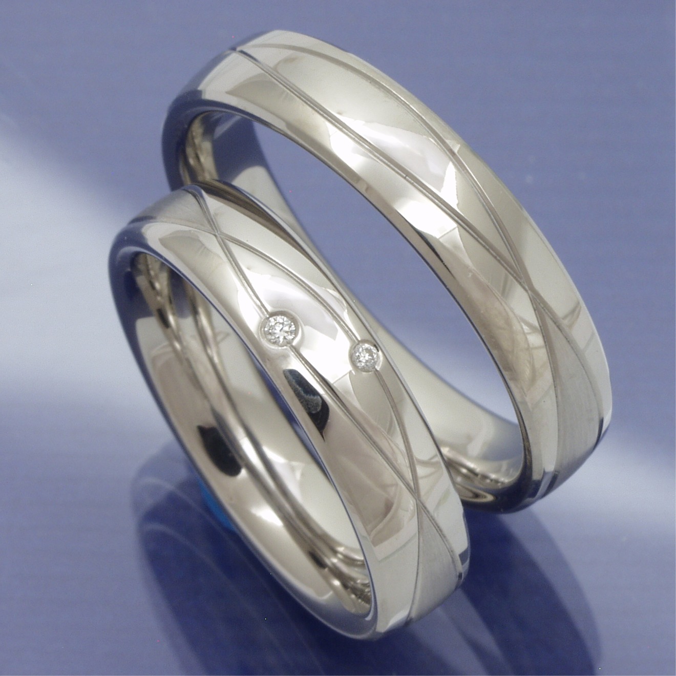 Trauringe 925 Silber – platiniert & mit Brillanten