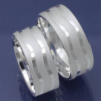 Partnerringe Verlobungsringe Freundschaftsringe aus 925 Silber. Diese Ringe werden mattiert und glänzend angefertigt. Die glänzenden erhabenen Flächen laufen in einer Welle um die Ringe.