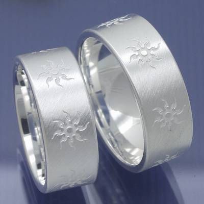 Verlobungsringe Freundschaftsringe mit umlaufenden Lasermuster Sonne.