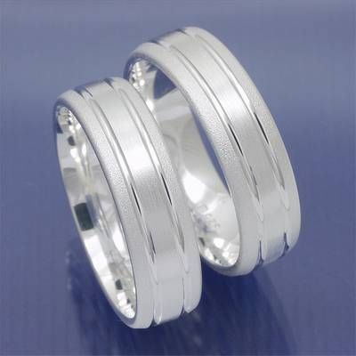 Diese Freundschaftsringe sind 6 mm breit und werden aus mattiertem 925/°°° Silber angefertigt. Die Ringe sind mattiert und haben zwei umlaufende Glanzrillen.