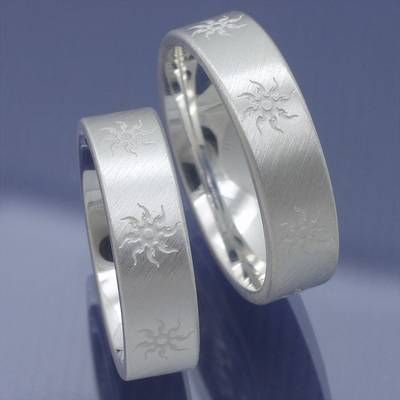 Verlobungsringe, Freundschaftsringe mit umlaufenden Lasermuster Sonne.