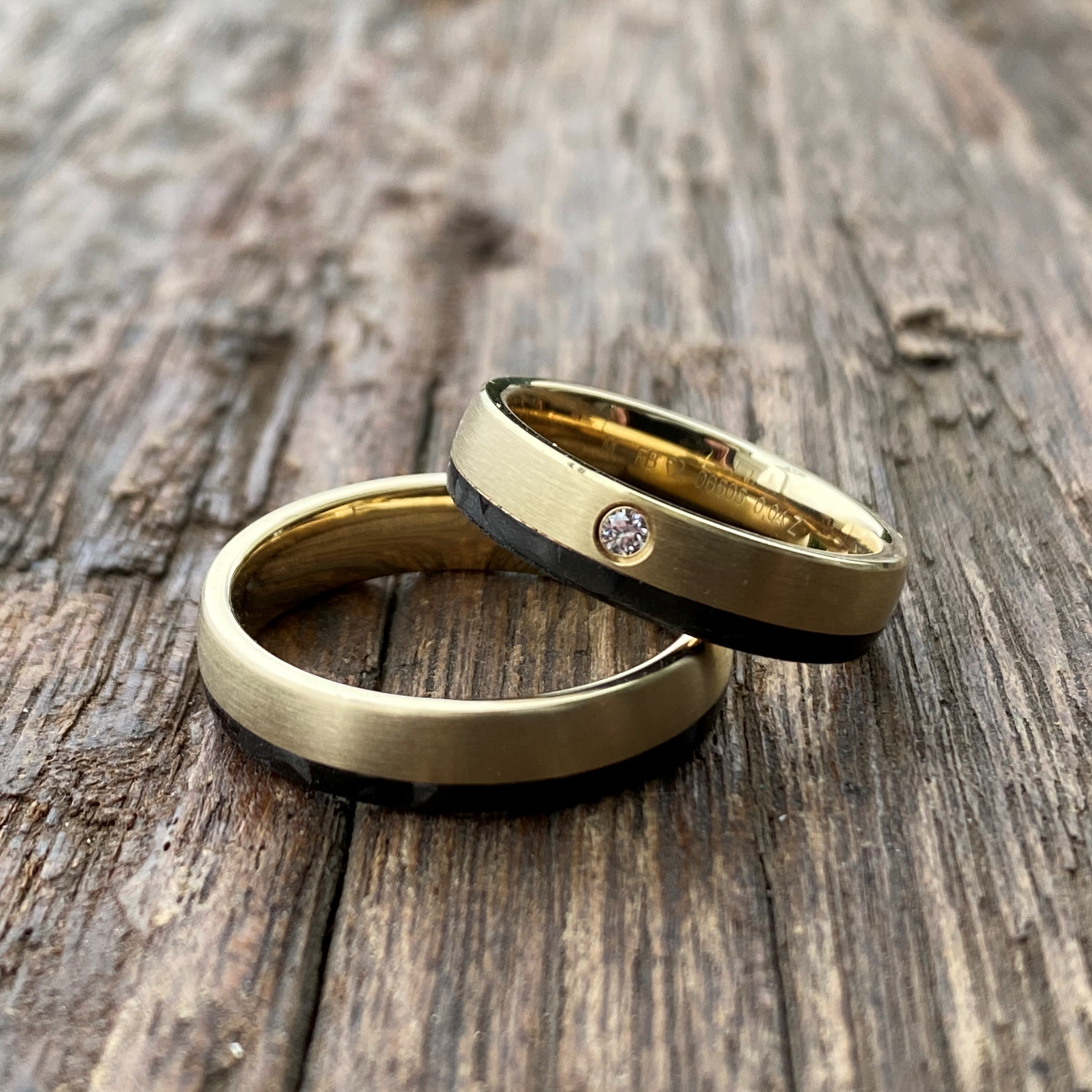Trauringe aus 585 Gelbgold mit Carbon und Brillant