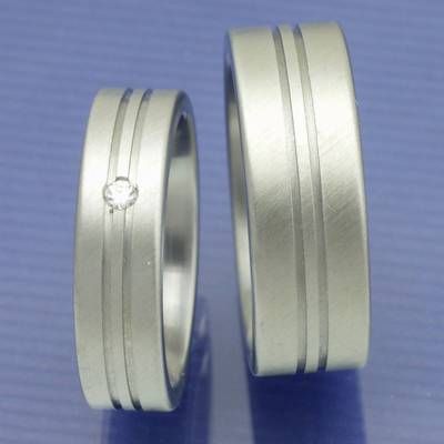 Eheringe Trauringe Freundschaftsringe aus Edelstahl. Der Damenring ist mit einem Zirkonia gefasst. Sie können auch einen Brillanten dazu bestellen (Brillanten zum ergänzen).