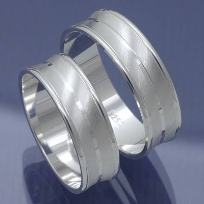 Konkave Verlobungsringe und Freundschaftsringe aus 925 Silber mit umlaufendem Lasermuster .