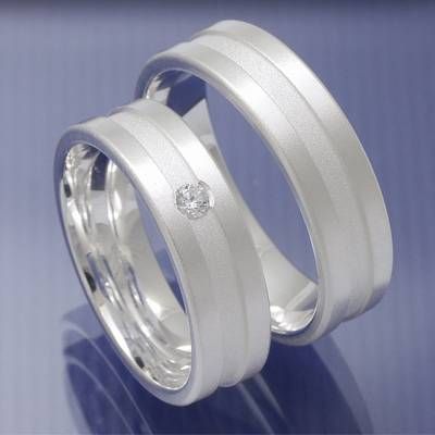 Diese Freundschaftsringe Verlobungsringe "Typ Dominique" werden aus Silber angefertigt. Der Damenring wird mit einem Zirkonia gefasst.