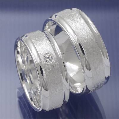 Diese breiten Verlobungsringe Freundschaftsringe "Typ Patricia" werden aus Silber angefertigt. Der Damenring wird mit einem Zirkonia gefasst.