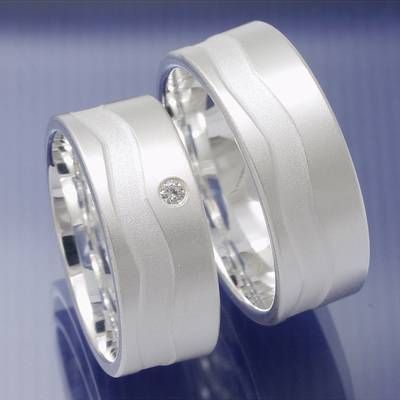 Diese breiten Verlobungsringe Freundschaftsringe "Typ Nathalie" werden aus Silber angefertigt. Der Damenring wird mit einem Zirkonia gefasst.